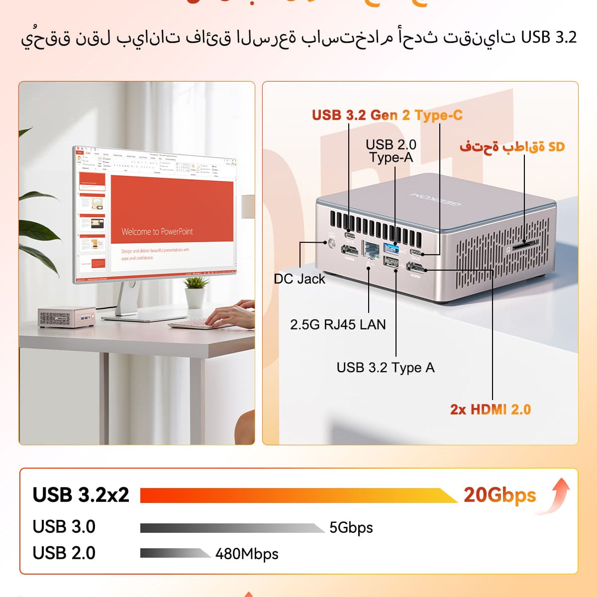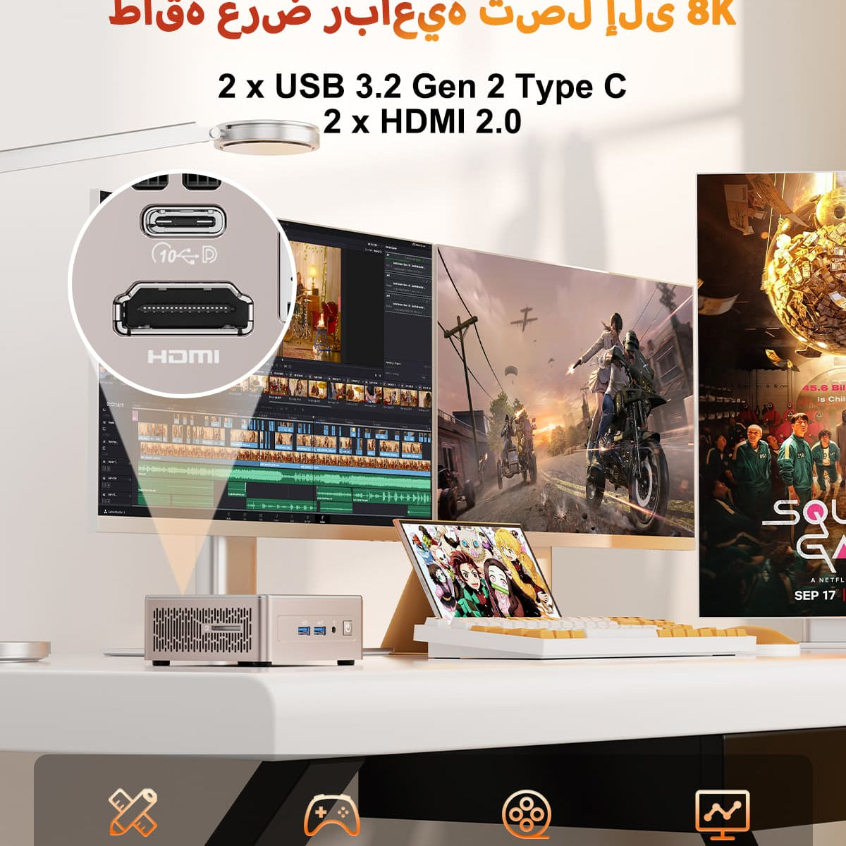 Mini computers usually come with a wide range of connectivity options including multiple USB ports, HDMI or DisplayPort outputs for dual monitor support, Ethernet, Wi-Fi, Bluetooth, and audio jacks. GEEKOM mini PCs offer robust connectivity to connect all the essential peripherals, supports dual and even 4 monitor setup for both work and play.