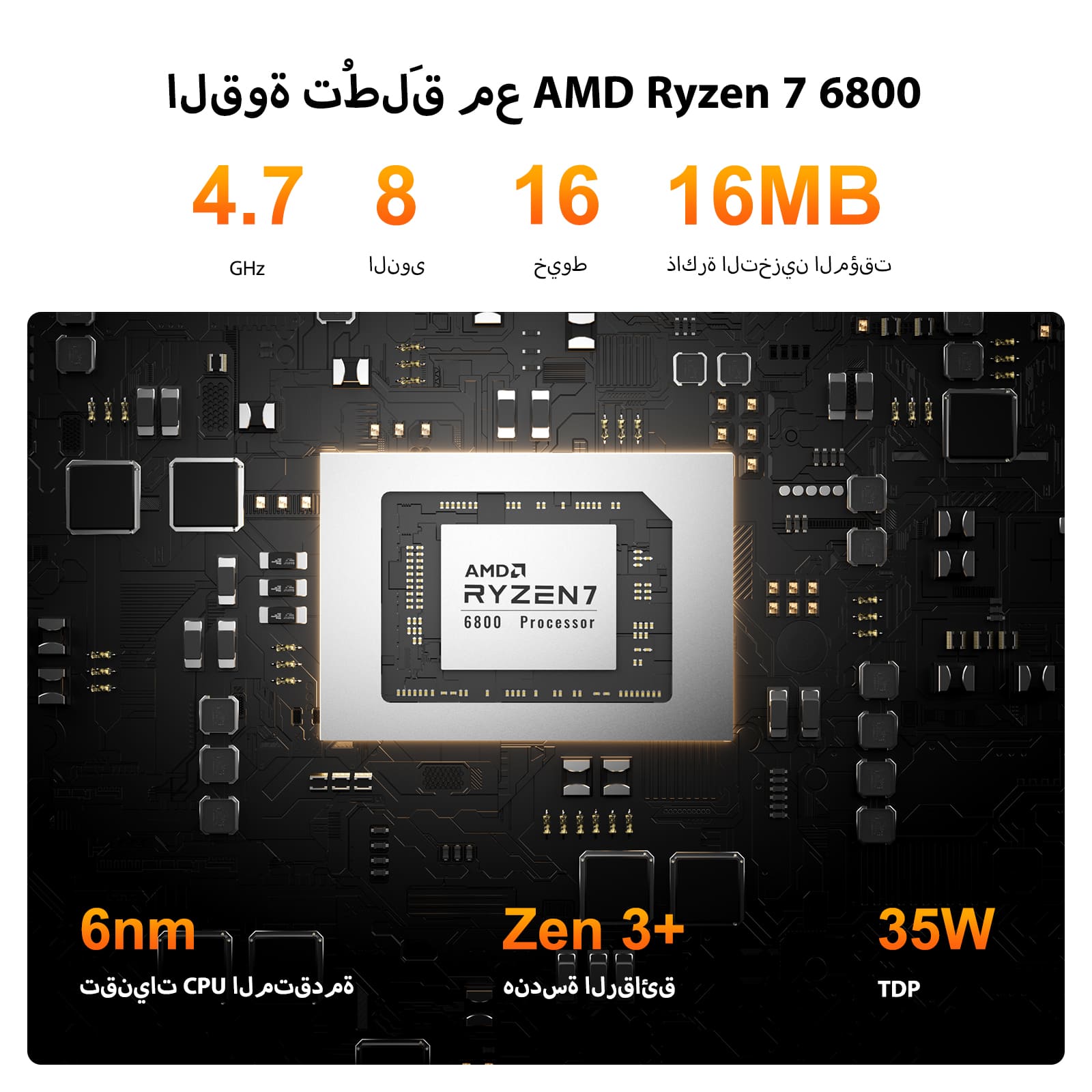 مجهز الآن بشريحة AMD Ryzen™ 7 6800 الشهيرة، يقدم جهاز A6 أداءً قويًا مع تحقيق أقصى قدر من فعالية التكلفة. سواء كنت تعمل من المنزل، أو في المكتب، أو تعمل في مجال تكنولوجيا المعلومات، أو مشتركًا في تحرير الفيديو، أو إنتاج الموسيقى، أو الألعاب الخفيفة إلى المتوسطة، فإن وحدة المعالجة المركزية القوية Ryzen™ 7 6800H ووحدة معالجة الرسومات Radeon 680M تضمان تشغيلاً سلسًا وسريع الاستجابة.
