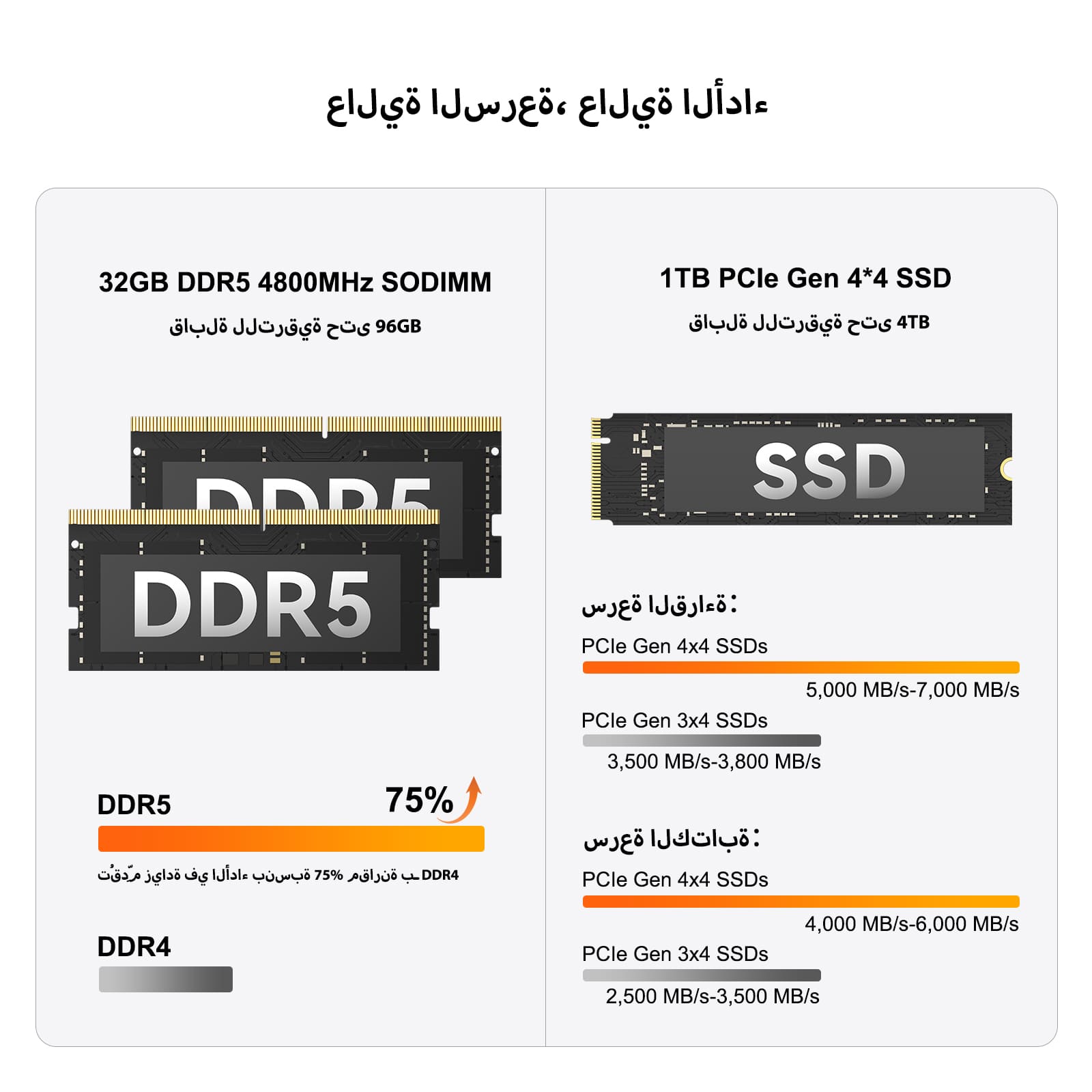 - قابلية تطور فعالة– مزود بذاكرة DDR5 وقرص NVMe SSD من نوع PCIe Gen 4، بالإضافة إلى فتحة M.2 2242 SATA SSD (حتى 1 تيرابايت)